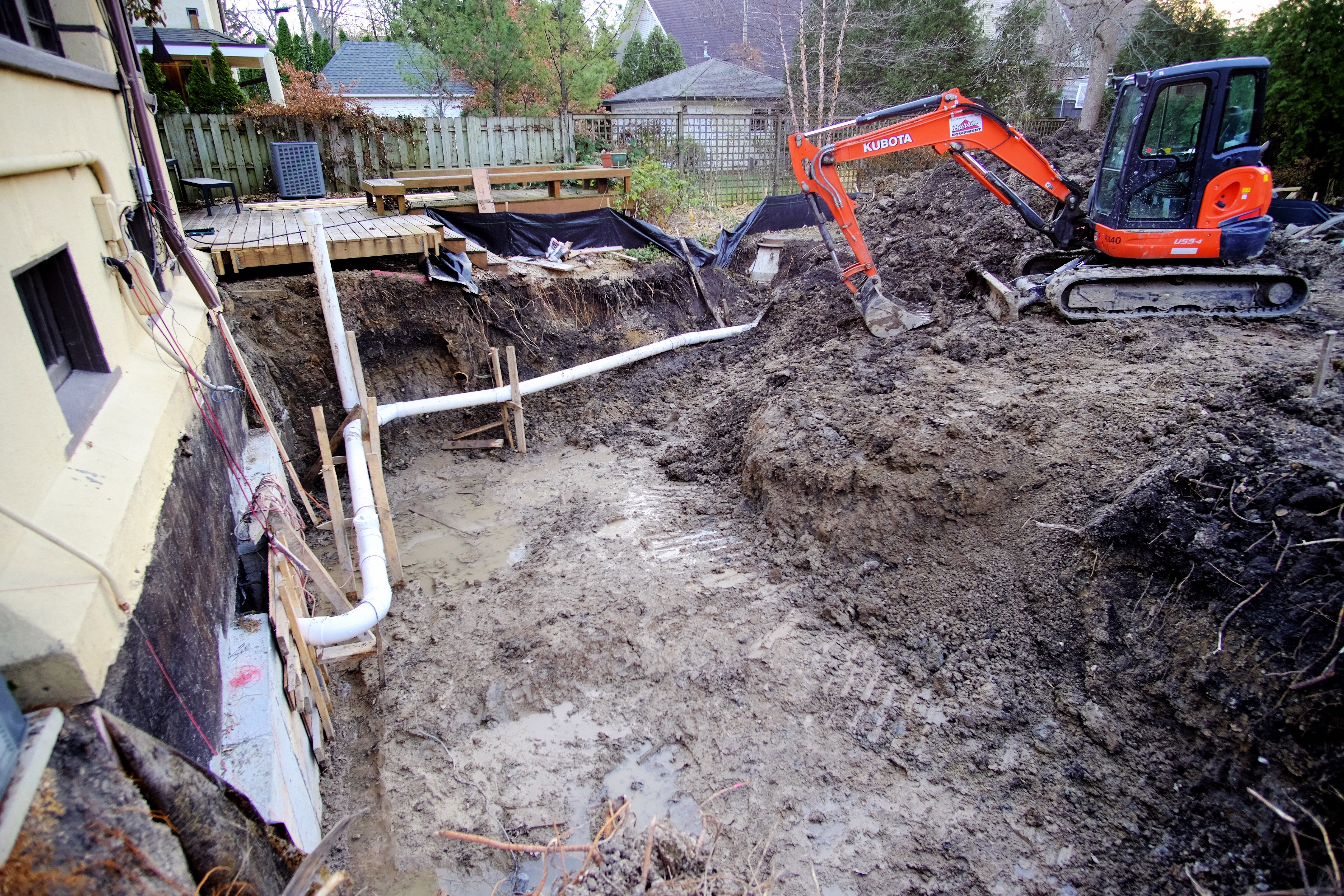 With the sewer line reroute complete, and the dirt dump back open after all of the recent rain, the concrete contractor was able to make significant progress excavating the new basement.